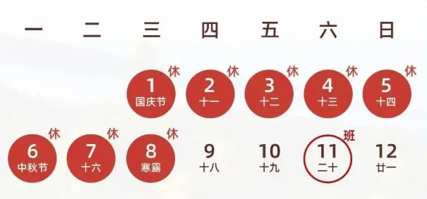 10月11日(周六)要上班